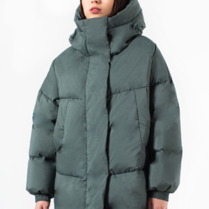 Шерстяное пуховое пальто 19131, серый меланж-кирпич
