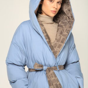 Пуховая куртка из смесовой шерсти и нейлона 0126А, голубой-принт AL