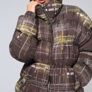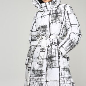 Пуховое пальто 19139, принт мозаика mini+гранж maxi .