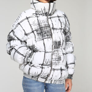 Стильная куртка 0126, белый-черный принт.