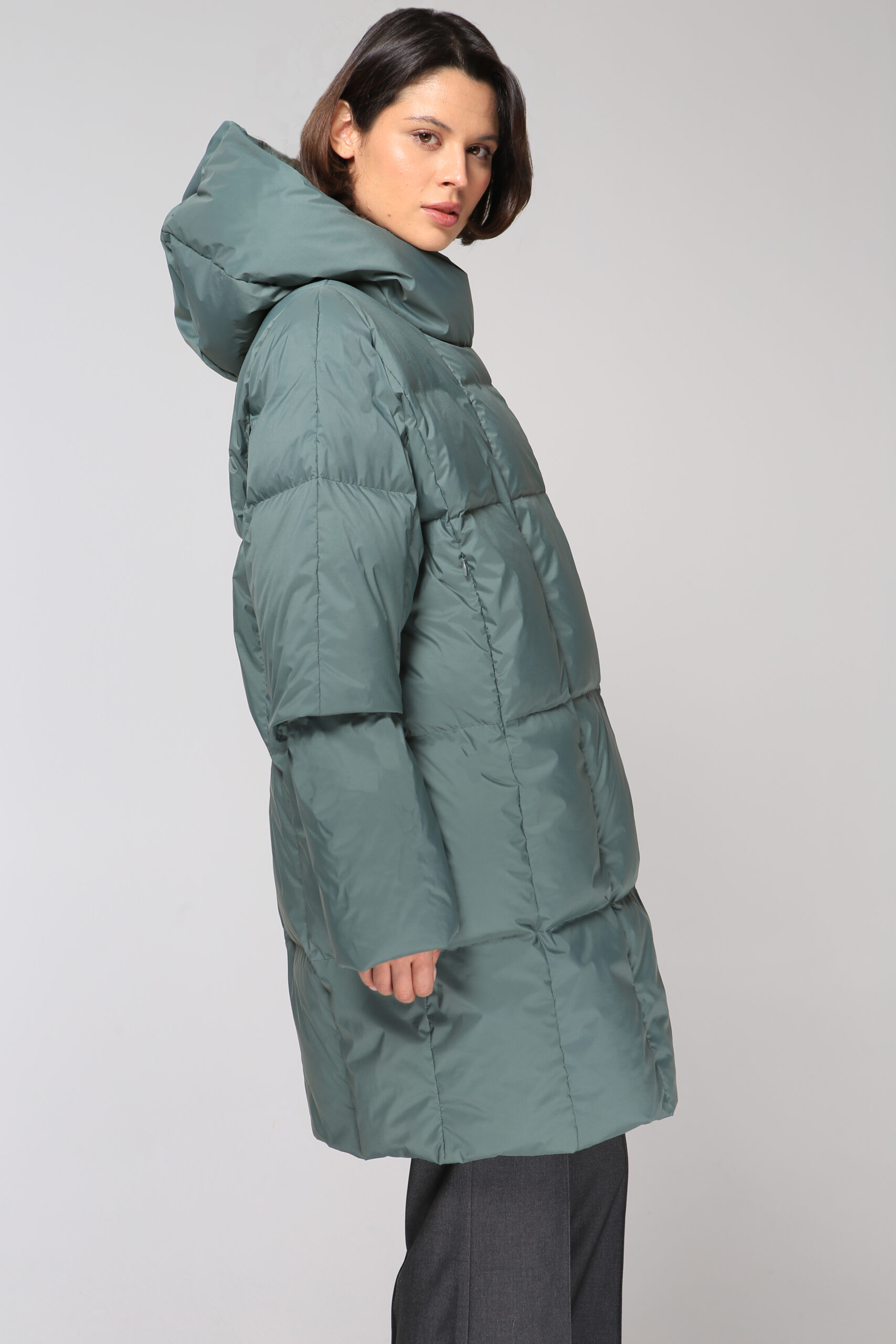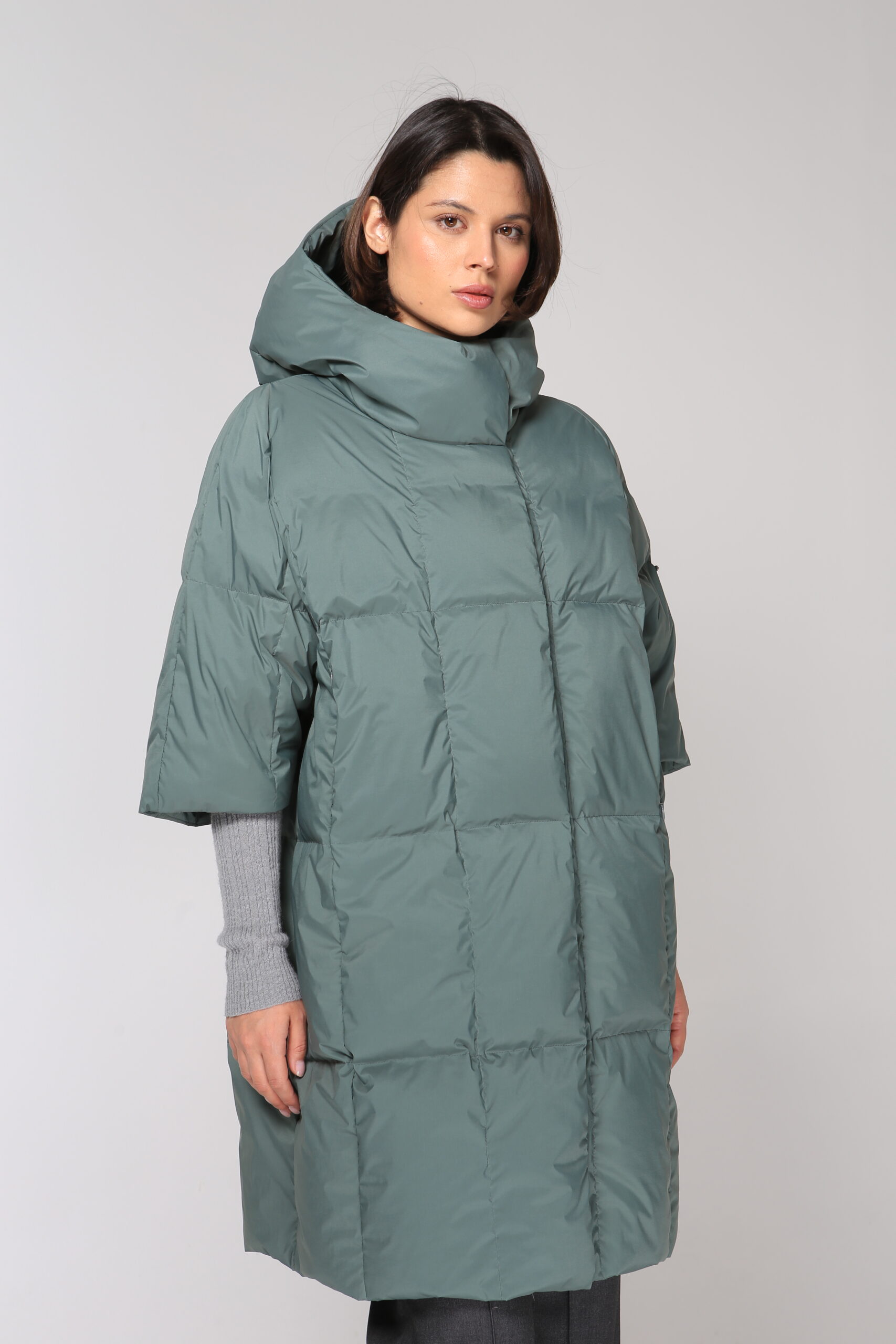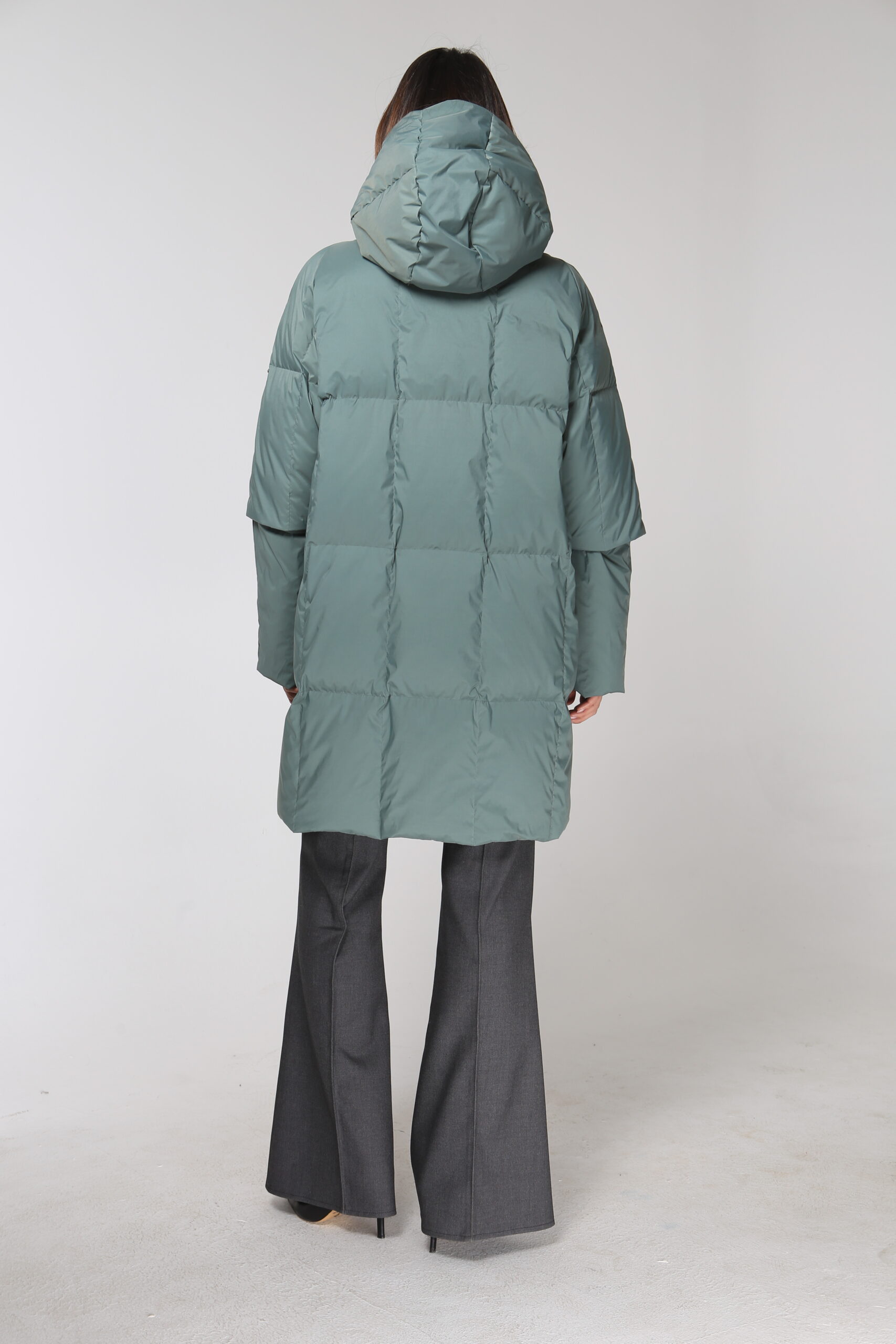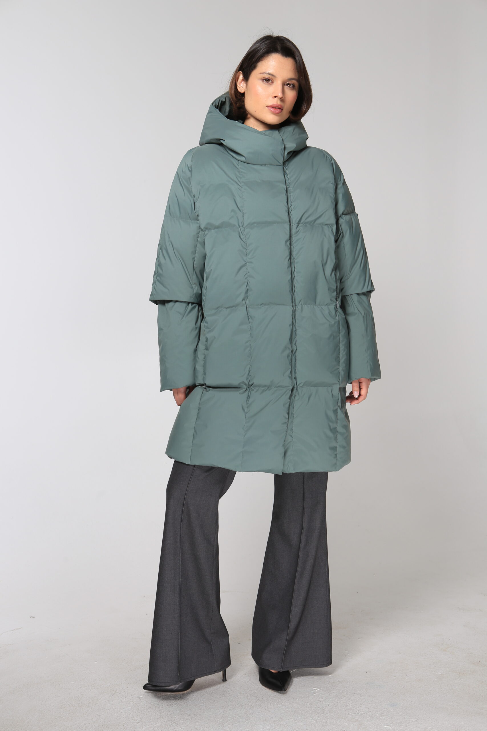 Пальто пуховое 19140 шалфей.